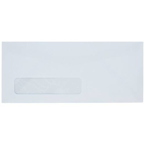 - #10 Envelopes brancos para janelas feitos de tecido branco premium de 24 libras; 4,12 x 9,5 polegadas; 100 envelopes por caixa.