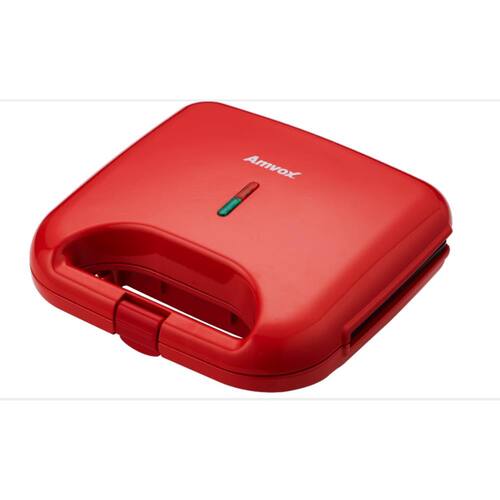 Sanduicheira e Grill Amvox AMS 370 RED com 750W de potência, trava de segurança, LED on/off, alça anFunciona como grill