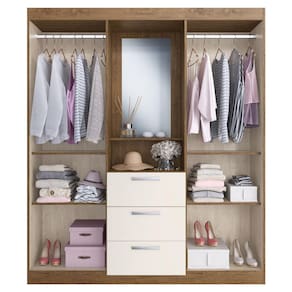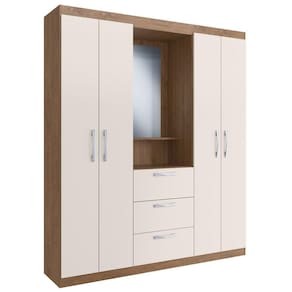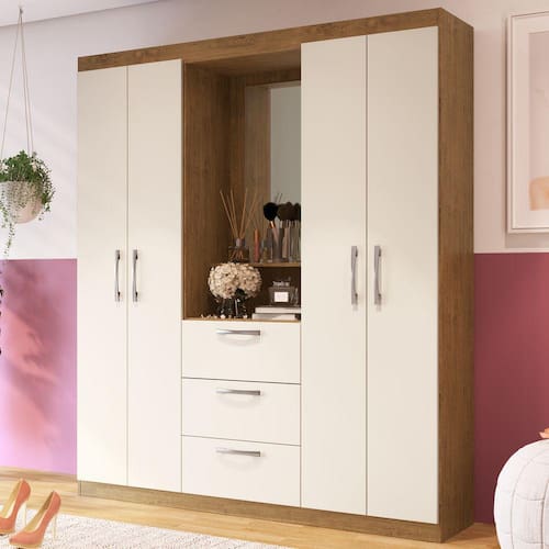 O(a) Guarda-Roupa Solteiro Panamá 4 Portas 3 Gavetas Off White/Nogueira - Doripel é produzido em MDP na escala de brilho Brilho, e possui um grau de dificuldade de montagem: Médio.