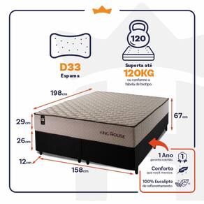 Feito com os mais nobres materiais em sua composição, ele conta com espuma D33 e molas ensacadas. O colchão King House acomoda melhor o contorno do corpo, dispondo de forma correta quadris e ombros, expulsando as dores e problemas de coluna.