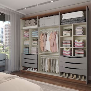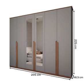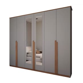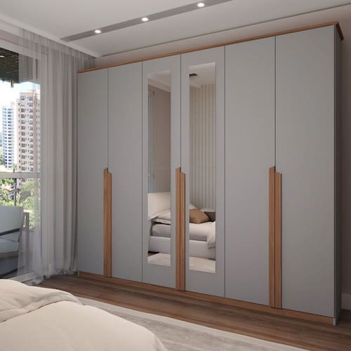 O(a) Guarda-Roupa Casal Calábria Slim 6 Portas 6 Gavetas Espelho Cinza/Nature - Loja é produzido em MDP na escala de brilho Brilho e Fosco, e possui um grau de dificuldade de montagem: Médio.