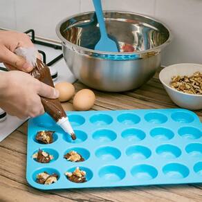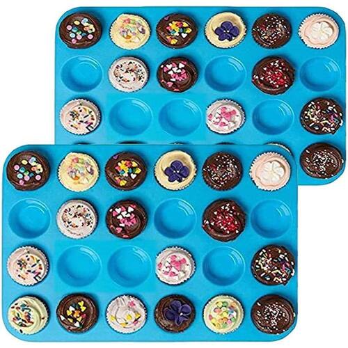 Bandeja para magdalenas de calidad alimentaria: bandeja para magdalenas de 24 tazas, 2 piezas, aprobada por la FDA, cada una, hecha de silicona de alta calidad para alimentos. Libre de ftalatos, PVC y otros materiales tóxicos, haga que los alimentos sean seguros como desee. Capacidad de la taza: 0,6 oz. Diámetro de la taza superior: 1.8 ", profundidad de la taza: 1.0", tamaño ideal para uso en horno ALTA RESISTENCIA: Molde para muffins de silicona del tamaño de un bocado, seguro para usar en horno, micro-ondas, lavavajillas, refrigerador, congelador. Amplio rango de resistencia al calor: -104 °F a 446 °F (-40 °C a 230 °C), cocina y dora uniformemente, rápido y incluso enfriar. FÁCIL DE HORNEAR Y LIBERAR: Superficie antiadherente y flexível, simplemente salga con el dedo presionado, fácil de liberar y limpiar, sin veramiento, antiadherente, sin quemaduras. Este molde para muffins es impermeável, práctico y duradero. MULTIFUNCIONES: ideal para hacer mini muffins, tarta, pan, tartas de queso, mousse, gelatina, bombas de grasa, acondicionamiento de alimentos, magdalenas, chocolate, natillas, jabones, puedes hornear más golosinas a la vez, ahorrar tiempo, ahorrar dinero.