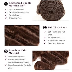Detalhes do cabelo humano brasileiro 10A Marca do cabelo: Aonbamds Material do cabelo: Feixes de cabelo humano brasileiro não processado grau 10A Qualidade do cabelo: não embaraça, macio, grosso, sem queda, pode ser enrolado, tingido, descolorido e estilizado Cor do cabelo: #4 Cabelo humano castanho Estilo de cabelo: Onda profunda mechas de cabelo humano Comprimento do cabelo: Feixes de cabelo humano de 30 a 86 cm em estoque Peso do cabelo: 50 gramas por pacote, 3 pacotes por pedido Ocasiões de cabelo: mechas de cabelo humano adequadas para aniversário, festa, férias, casamento, formatura, viagens Perguntas frequentes sobre mechas de cabelo humano marrom onda profunda nº 4 P1: Como evitar quedas e emaranhados? A1: Nosso cabelo tem uma estrutura de trama dupla e geralmente não cai, mas evite esfregar e puxar com força para evitar danificar a trama dupla e fazer com que ela caia; devido ao acúmulo de suor e sujeira durante o uso diário, o emaranhamento é normal e a limpeza regular é suficiente. P2: Cheiro de cabelo? A2: sem cheiro. Sem produtos químicos, pode ter cheiro de xampu local, mas pode ser removido por lavagem conjunta com xampu e condicionador. P3: Posso tingir/colorir? R3: Sim, o cabelo pode ser permanente/tingido/descolorido/destacado. Se você não for profissional, vá ao salão de beleza e obtenha ajuda do cabeleireiro. Manutenção diária de mechas de cabelo: Use regularmente o spray de cuidados com a peruca para manter o brilho e a flexibilidade da peruca e reduzir a geração de eletricidade estática. Evite expor mechas de cabelo a altas temperaturas ou ambientes úmidos, e armazene-os em local seco e ventilado quando não estiver em uso Armazene os cachos de cabelo adequadamente, evite espremer ou dobrá-los, use suportes especializados para perucas ou coloque-os planos em áreas ventiladas - Material dos mechas de cabelo humano: mechas de cabelo humano 10 A, mechas de cabelo humano virgem brasileiro, corte de meninas, não sintético, saudável e limpo. - Qualidade do cabelo humano: mechas de cabelo humano brasileiro, trama de cabelo humano forte de máquina dupla, trama apertada e limpa, sem emaranhamento, sem queda, macio e completo. Feixes virgens não processados de alta qualidade fáceis de misturar com seu próprio cabelo. - Características dos feixes de cabelo humano brasileiro: mechas de cabelo humano liso para mulheres negras, 3 mechas em um pacote, 50 gramas cada pacote, 30 a 86 cm em estoque. Fiel ao comprimento e fiel ao peso. - Cor dos feixes de cabelo trançado: #4 cachos de ondas profundas marrom cabelo humano, pode ser alisado, enrolado, descolorido tingido e reestilizado. - Pacote de mechas de cabelo brasileiro: 3 mechas de cabelo humano, mechas de ondas profundas de cabelo humano darão a você um visual brilhante para o dia a dia, como casamento, encontros, festas temáticas e assim por diante.