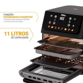 A Fritadeira Elétrica Oven PAF11B 11L da Philco é a escolha perfeita para quem busca praticidade e sabor. Com 8 funções pré-programadas, você prepara diversos alimentos sem complicação. A capacidade de 11 litros garante espaço para grandes porções, ideal para famílias ou para receber amigos.