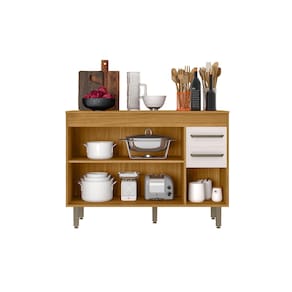 MDPA estrutura conta com dobradiças metálicas de 26mm, 1 prateleira interna que suporta até 4kg e puxadores em polímero na cor bronze, que agregam elegância ao visual do móvel. Os pés reguláveis de 17cm em PVC modelo pirâmide garantem estabilidade e nivelamento, mesmo em pisos irregulares.