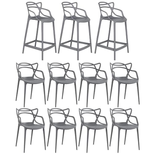 [Encerrado] Kit 8 cadeiras + 3 banquetas médias Masters Allegra - Cinza