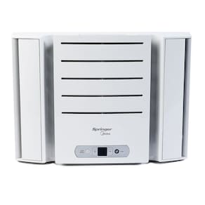 O ar-condicionado de janela eletrônico Springer Midea é um aparelho compacto e uma ótima opção para quem busca custo benéfico sem abrir mão do bem-estar, conforto térmico, e baixo consumo de energia. Possui classificação A de eficiência energética na capacidade de 7500 kBTU/h¹. A temperatura pode ser ajustada através de um display digital que também exibe as funções selecionadas e ainda conta com controle remoto que trás mais conforto e praticidade. Está disponível nas capacidades 7.500 e 10.000 BTU/h frio, em 127V e 220V. Mais eficiência e economia, com Classificação A de Energia¹. Função Turbo: ajusta o ar-condicionado em 20°C em velocidade alta para proporciona conforto térmico mais rápido. Função Dormir: ajusta automaticamente a temperatura do ambiente durante o período do sono, proporcionando mais economia e conforto. A temperatura ajustada aumentará 1°C por hora, nas duas primeiras horas, permanecendo nessa temperatura por mais 5 horas. Decorrido o período total de 7 horas, o aparelho desligará. Função LED: apaga a iluminação proveniente do mostrador digital do painel proporcionando um ambiente mais agradavel e confortavel durante o sono. Função Timer (Temporizador): programe seu ar-condicionado para ligar e desligar no horário desejado, com uma programação simples e rápida. Sistema de renovação de ar: deixa o ar mais puro e saudável, dissipando odores para deixar o ambiente mais limpo e saudável. A temperatura pode ser ajustada através de um display digital que também exibe as funções selecionadas e ainda conta com controle remoto que traz mais conforto e praticidade. Fácil de limpar, já que possui painel frontal removível para acesso ao filtro de ar. Conta com 2 modos de operação: Refrigeração e Ventilação e 2 velocidades de operação: baixo e alto. Possui um moderno conceito de distribuição de ar bilateral, ou seja, o ambiente fica climatizado de forma mais eficiente. Fluido refrigerante ecológico R-410A, não inflamável, atóxico e que não agride a camada de Ozônio. Potência declarada baseada no teste obrigatório (outdoor 35ºC) da norma ISO 16358-1 para produtos de vazão fixa de refrigerante. Somente para modelos 7.500 BTU/h; Modelos 10.000 BTU/h possuem classificação B de energia. ATENÇÃO: ESTA LOJA NÃO FATURA PARA CNPJ.