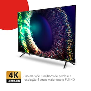 - 4K ULTRA HDUm espetáculo de cores à parte! Os mais de 8 milhões de pixels na tela e a resolução 4 vezes maior que o Full HD acentuam contrastes e cores, fazendo com que você assista a seus programas de forma única!