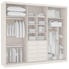 Características Técnicas Estrutura: MDF Dobradiça de 35mm Slowmotion Puxadores com haste um alumínio e ponta em PS Preto Corrediças telescópicas para abertura total das gavetas Cabideiro de metal Espelho
