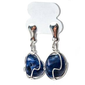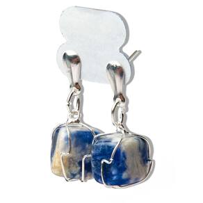 Este brinco combina os tons profundos e marcantes da Sodalita Azul rolada e polida com um design chique e artesanal: um delicado cesto amarradinho, montado manualmente. Um acessório com elegância natural, perfeito para quem busca estilo com significado, equilíbrio e boas vibrações. A base metálica recebe acabamento prateado sobre metal niquelado, criando um contraste sutil que valoriza os azuis intensos e os veios claros característicos dessa pedra. Detalhes da Peça\nNome da Pedra: Sodalita Azul Natural\nCor: Azul profundo com veios brancos naturais (vide fotos reais)\nTipo de Brinco: Tarraxa com peça em pedra amarrada na cesta\nCorte: Rolado polido – formato orgânico e fluido\nClaridade: Vítreo opaco\nMedidas das Peças: 25 x 7 mm (aproximadas)\nPeso total das peças: 25 quilates (podendo variar)\nMetal: Niquelado com acabamento prateado\nOrigem: Montagem artesanal em Curvelo – MG\nDestaques\nFeito à mão, com acabamento exclusivo e toque artesanal\nSodalita Azul: pedra associada à clareza mental, intuição e equilíbrio interior\nMistura perfeita de rusticidade com sofisticação\nIdeal para o uso diário ou para presentear com estilo e significado\nLeve mais foco, harmonia e autenticidade para o seu visual com esta joia feita com alma. Artesanal • Intuitivo • Estiloso Marca: Não Informado