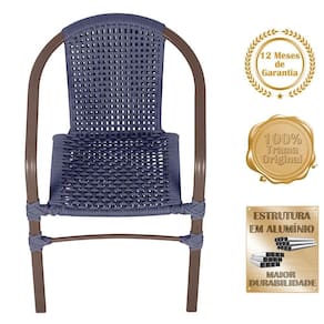 01 Cadeira Floripa Aluminio Pintura Marrom Trama Azul