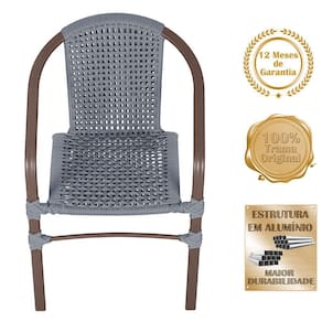 01 Cadeira Floripa Aluminio Pintura Marrom Trama Prata