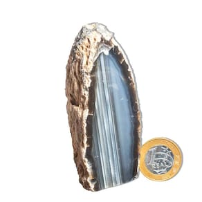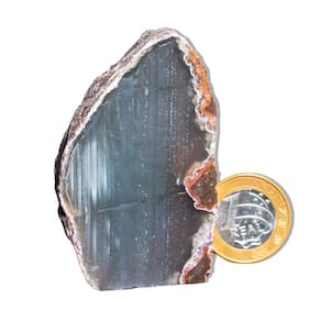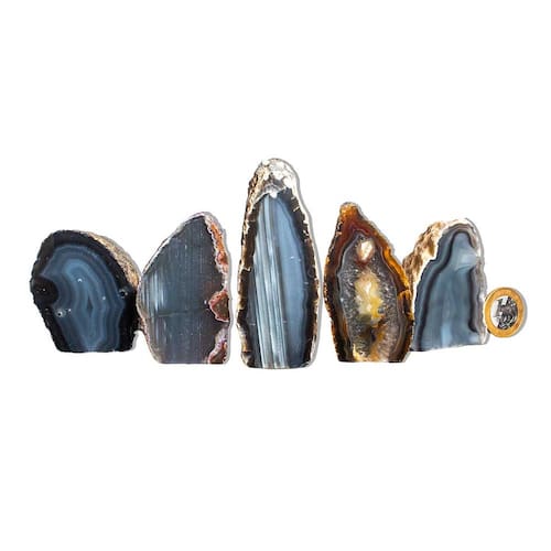 Ágata Preta – Pedra Natural de Qualidade para Decoração e Bem-Estar Transforme seu ambiente com a energia forte e protetora dos Geodos de Ágata Preta. Perfeitas para decoração, práticas esotéricas e como um presente especial, essas pedras naturais trazem um toque único e equilibrado para sua casa ou espaço de trabalho. Características do Produto:\nNome: Ágata Preta Tamanho das Pedras: Entre 7 a 12 cm (tamanhos podem variar conforme o estoque disponível) Cor: Preto intenso, com variações de brilho e texturas Peso Médio por Pedra: 150 a 200g Qualidade: Comum (ideal para quem busca pedras naturais com uma boa relação custo-benefício)\nDestaques:\nPedras Naturais: Cada geodo é uma peça única, extraída diretamente do garimpo, com formas e tonalidades exclusivas. As pedras podem apresentar pequenas inclusões, características que fazem delas ainda mais especiais e autênticas. Acabamento Polido e Base Serrada: A face da pedra é polida, e a base serrada garante que ela fique estável e possa ser facilmente exibida, seja em prateleiras, mesas ou como peça decorativa. Energia Protetora e Equilibrante: Conhecida por suas propriedades de proteção e estabilidade, a Ágata Preta é ideal para quem busca promover um ambiente energicamente equilibrado e harmonioso. Variações Naturais: Como se trata de uma pedra natural, as cores, padrões e formatos podem variar, garantindo que cada peça seja única. Tratamento com Óleo Mineral: As pedras são cuidadosamente tratadas com óleo mineral para preservar seu brilho e beleza por mais tempo.\nImportante:\nO produto é 80% tingido, prática comum no mercado de Ágata para destacar suas cores naturais e garantir um visual encantador. As fotos são ilustrativas e podem variar conforme o lote e as características das pedras.\nPor que comprar conosco?\nProduto Único e Exclusivo: Ao adquirir um Geodo de Ágata Preta, você leva para casa uma peça única, repleta de charme e elegância natural. Qualidade e Preço Acessível: Oferecemos pedras de alta qualidade a preços justos, ideais para quem busca algo especial sem gastar muito. Comodidade na Compra: Entregamos rapidamente, garantindo que sua experiência de compra seja tranquila e satisfatória.\n Transforme Seu Espaço com a Beleza e Energia da Ágata Preta! Compre Agora! Marca: CristaisdeCurvelo