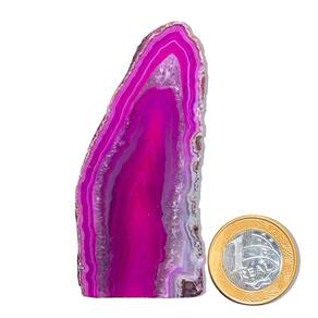 O produto é 80% tingido, uma prática comum no mercado de Ágata para realçar suas cores naturais. As fotos são ilustrativas e podem variar conforme o lote e as características das pedras.