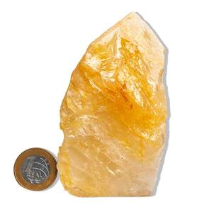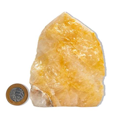 Hematoide Amarelo Bruto com Base Serrada – Pedra Natural para Decoração e Energia Revigorante. Descubra o magnetismo solar da Pedra Hematoide Amarelo Bruto, uma joia da natureza que combina beleza vibrante e presença energética marcante. Com tonalidades que oscilam entre o dourado, o âmbar e o amarelo intenso, essa pedra irradia calor, clareza e vitalidade, criando uma atmosfera acolhedora e revigorante em qualquer ambiente. Sua base serrada garante estabilidade para exposição vertical, ideal para composições decorativas que buscam um ponto de luz natural, energia positiva e sofisticação terrosa. Perfeita para quem valoriza peças com personalidade, cor e conexão energética autêntica. Dimensões e Peso Aproximado\nPeso por unidade: entre 500 a 700g Tamanho aproximado: 10 a 15cm\nHematoide Amarelo Bruto com Pé e Bico Serrado – Conexão com a Vitalidade Interior Uma pedra que irradia poder, energia e transformação. O Hematoide Amarelo Bruto com pé e bico serrado Tipo B não é apenas uma peça mineral: é um portal para o equilíbrio entre força, clareza mental e vitalidade emocional. Ideal para quem busca autenticidade na decoração, profundidade nas práticas espirituais e uma presença energética firme no ambiente. Propriedades Energéticas e Simbólicas O Hematoide Amarelo combina a energia estabilizadora da hematita com os tons vibrantes do quartzo amarelo, resultando em um cristal de poder incomparável. Reconhecido por fortalecer a mente, alinhar as emoções e promover a autoconfiança, ele é um excelente aliado na transmutação de energias densas e no desbloqueio dos centros energéticos. Atua especialmente sobre o chakra do plexo solar, fortalecendo a determinação e a vitalidade interna. Usos Sugeridos Esta peça é extremamente versátil: pode ser usada como elemento de destaque em decoração consciente, em altares pessoais, em práticas meditativas voltadas ao foco e à coragem, ou como ferramenta energética em terapias holísticas como o Reiki, a cristaloterapia e a harmonização de ambientes. Também é uma escolha marcante para colecionadores de minerais que apreciam a beleza da natureza em estado bruto. Curiosidade e Valorização Conhecido também como "Fire Quartz" (Quartzo Fogo), o Hematoide é tradicionalmente ligado a culturas que valorizam a união entre força de ação e clareza de pensamento. É considerado um cristal de ancoragem emocional, frequentemente utilizado por praticantes de meditação ativa e técnicas de empoderamento pessoal. Classificação por Qualidade\nTipo A – Qualidade superior: cores mais intensas, menos inclusões, forma bem definida, excelente para fins estéticos e espirituais exigentes. Tipo B – Qualidade intermediária: tonalidade variada, pequenas imperfeições naturais, ideal para terapias, uso pessoal e decorações rústicas. Tipo C – Qualidade econômica: mais rústico e com maior grau de variação visual.\nInformações Técnicas\nAcabamento: base (pé) e ponta (bico) serradas manualmente para melhor estabilidade e apresentação\nSobre Variações Naturais Por se tratar de uma pedra natural bruta, cada peça é absolutamente única. Variações de cor, forma, textura e microfissuras fazem parte do charme autêntico de um mineral não industrializado, refletindo sua origem e jornada geológica. Essas particularidades não comprometem a beleza nem a função energética da pedra — pelo contrário, as tornam ainda mais especiais. Tratamentos e Cuidados Esta peça pode receber hidratação com óleo mineral para realce visual e proteção superficial. A lapidação do pé e bico é realizada artesanalmente, respeitando as características naturais da matéria-prima. Sustentabilidade e Compromisso Ambiental<