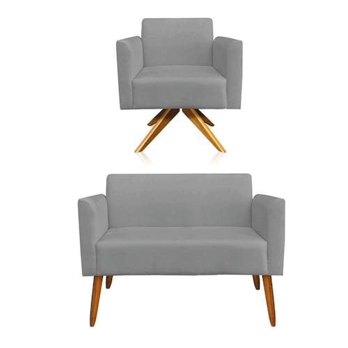Kit 01 Namoradeira e 01 Poltrona Marisa Suede Base Giratória Madeira MA30 D'Rossi