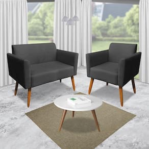 Kit 01 Namoradeira e 01 Poltrona Marisa Suede Pés Palito Castanho D'Rossi