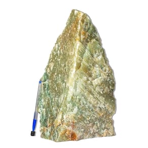 Ônix Verde Bruto com Base Serrada – Pedra Natural para Decoração e Bem-Estar Impressione com a beleza sólida e energética da Pedra Ônix Verde Bruto, uma peça marcante e imponente para decoração de ambientes internos ou externos. Sua base serrada proporciona estabilidade, permitindo que a pedra permaneça em pé com elegância, ideal para quem busca harmonia visual e um toque natural no espaço. Características da Pedra\nNome: Ônix Verde Natural\nCor: Verde profundo e uniforme\nFormato: Bruto com base plana (serrada) para apoio estável\nMedidas Aproximadas: 34 a 42cm (Média de 38cm)\nPeso Aproximado: 10 a 15Kg\nOrigem: Cristais de Curvelo – Minas Gerais, Brasil\nObservações: Por ser uma pedra natural, podem ocorrer variações em tonalidade, texturas e marcas superficiais que ressaltam sua autenticidade. A hidratação com óleo mineral é recomendada para preservar seu brilho.\nBenefícios e Aplicações Esta peça é altamente versátil, podendo ser utilizada em:\nDecoração sofisticada: ideal para salas, escritórios, halls ou áreas externas cobertas.\nAmbientes de meditação ou prática pessoal: contribui para a organização da energia e favorece ambientes mais calmos.\nEspaços comerciais: destaque para vitrines, recepções e consultórios.\nCuidados e Conservação\nEvite contato direto com água por períodos prolongados.\nRecomenda-se a aplicação periódica de óleo mineral para manter sua cor viva e superfície protegida.\nPor ser uma peça de grande porte, o manuseio deve ser feito com cuidado para evitar impactos.\nNota Final Cada peça de Ônix Verde é única – com padrões, camadas e nuances que só a natureza é capaz de criar. Essa é uma otima oportunidade de adquirir um exemplar genuíno, bruto e impactante para integrar beleza natural à sua rotina. Marca: Não Informado