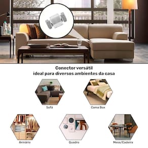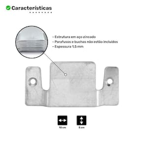 Este conector de encaixe é a solução perfeita para garantir a fixação ideal de sofás, cabeceiras, painéis e muito mais. Compatível com uma variedade de móveis, ele é fabricado em metal galvanizado de alta durabilidade, com aproximadamente 1,5 mm de espessura, proporcionando resistência e segurança para seus projetos. Liberte sua criatividade e utilize este acessório versátil para transformar o design dos seus móveis. Observação: Parafusos e buchas não estão incluídos.
