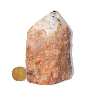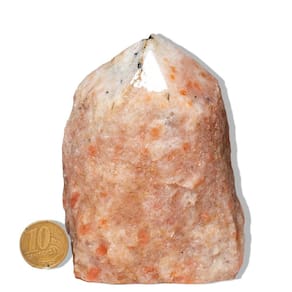 Nome: Pedra do Sol Natural (Gold Stone) Cor: Laranja vibrante com pigmentos vermelhos cintilantes Corte: Pé e Bico Polido Claridade: Vitral, sem transparência, ideal para Decorações Medidas: 8 a 11cm (varia conforme o estoque) Peso: 400 a 500g (varia conforme o estoque) Origem: Lapidação em Curvelo, MG; pedra de garimpo natural