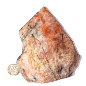 Nome: Pedra do Sol Natural (Gold Stone) Cor: Laranja vibrante com pigmentos vermelhos cintilantes Corte: Pé e Bico Polido Claridade: Vitral, sem transparência, ideal para Decorações Medidas: 11 a 14cm (varia conforme o estoque) Peso: 900g a 1Kg (varia conforme o estoque) Origem: Lapidação em Curvelo, MG; pedra de garimpo natural