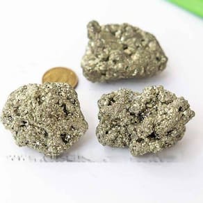 Descubra a beleza natural da pedra Pirita bruta cristal que atrai prosperidade e confiança.