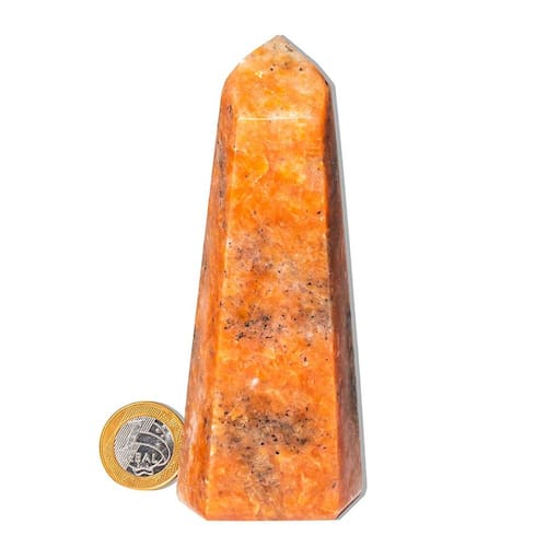 Ponta de Pedra Calcita Laranja - Energia Vibrante e Beleza Natural para Sua Decoração Descubra a magia da Calcita Laranja! Com suas cores intensas e vibrantes, a ponta de pedra calcita laranja é perfeita para decorar qualquer ambiente, trazendo energia positiva, criatividade e bem-estar. Transforme sua casa ou escritório com essa pedra única e aproveite seus benefícios espirituais e energéticos. Características do Produto:\nNome da Pedra: Calcita Laranja\nCor da Pedra: Laranja vibrante (Foto ilustrativa)\nCorte: Ponta Sextavada (gerador)\nClaridade: Densa e brilhante, com qualidade superior\nTamanho da Pedra: Entre 13 e 14 cm\nPeso: 500 a 700g (Pode variar)\nOrigem: Brasil\nCuidados: Hidratação com óleo mineral para manter o brilho\nPor Que Escolher a Calcita Laranja? A Calcita Laranja é uma pedra natural fascinante que combina beleza e benefícios espirituais. Sua cor laranja intensa é resultado da presença de minerais como ferro, tornando-a não apenas um item de decoração, mas também uma aliada poderosa para quem busca equilíbrio emocional, motivação e bem-estar. Benefícios Energéticos e Espirituais:\nAumenta a criatividade e motivação: Perfeita para quem precisa de um impulso de energia para alcançar seus objetivos.\nEquilíbrio emocional: Associada ao chakra sacral, ajuda a restaurar o equilíbrio das emoções, proporcionando uma sensação de paz e harmonia.\nCura espiritual: Excelente para meditação, visualização e fortalecimento da intuição, permitindo um crescimento pessoal profundo.\nDecoração e estilo: Além de seus benefícios energéticos, a Calcita Laranja traz um toque único de beleza natural para qualquer espaço.\nA Calcita Laranja na Sua Casa ou Escritório Com seu formato elegante e cores vibrantes, a Calcita Laranja é ideal para decoração de interiores. Coloque-a em sua mesa, prateleira ou estante, e ela será um ponto de energia que ilumina qualquer ambiente. Pode também ser utlizada em joalheria artesanal, proporcionando um toque sofisticado e cheio de energia positiva. Importante: Por ser uma pedra natural, a Calcita Laranja pode apresentar variações de tonalidade e pequenas inclusões, características típicas de minerais autênticos. Essas variações não afetam a beleza ou qualidade da pedra, mas a tornam ainda mais única. Garanta a Sua Calcita Laranja e Traga Mais Energia ao Seu Espaço! Não perca a oportunidade de adicionar essa beleza natural e energia positiva à sua vida. Clique aqui para comprar agora e experimente o poder da Calcita Laranja em sua decoração e no seu bem-estar. Por que comprar com a gente?\nProduto 100% natural e garantido.\nEntrega rápida e segura para todo o Brasil.\nAtendimento especializado para tirar suas dúvidas e ajudar na sua escolha.\nFAQ (Perguntas Frequentes): 1. A Calcita Laranja pode ser utilizada para meditação?Sim, a Calcita Laranja é ideal para práticas de meditação, estimulando a criatividade e o equilíbrio emocional, além de auxiliar no fortalecimento da intuição. 2. Como posso usar a Calcita Laranja na decoração?Coloque-a em mesas, estantes, ou como parte de uma coleção de cristais. Sua cor vibrante e formato sofisticado trazem energia positiva ao ambiente. 3. A Calcita Laranja substitui tratamentos médicos?Não, a Calcita Laranja pode ser um complemento valioso para o bem-estar emocional e espiritual, mas não substitui tratamentos médicos convencionais.