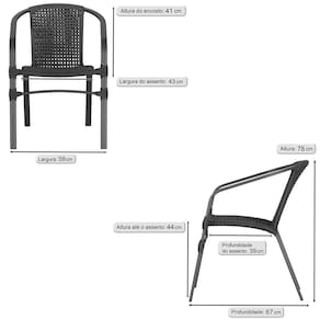 02 Cadeira Floripa Aluminio Trama - Preto