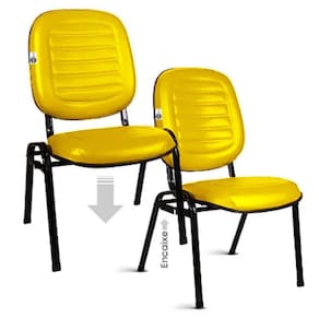02 Cadeiras Empilhável Gomada para Igrejas Evangélicas Linha Holy com gancho lateral para encaixe - Tonalidade da Cor do Assento e Encosto: Amarelo - Marca: Design Office Móveis - Revestimento do Assento e Encosto: Material Sintético
