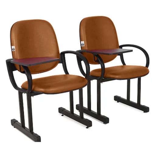 02 Cadeiras para Auditório, Cinemas, Teatros, Escolas e Faculdades com Prancheta Linha Dallas Auditório - Tonalidade da Cor do Assento e Encosto: Caramelo - Marca: Design Office Móveis - Revestimento do Assento e Encosto: Material Sintético A Cadeira para Auditório com Prancheta Linha Dallas Auditório da marca Design Office Móveis, foi projetada para proporcionar conforto e bem estar, tornando o dia-a-dia mais agradável. Utilizado para compor diversos tipos de ambientes a Linha Dallas Auditório da marca Design Office Móveis são modelos de cadeiras para Auditório, salas de convenção, empresas de treinamento, auditórios e ambientes corporativos, com medidas avantajadas, ergonômicas e confortáveis, que se diferenciam de modelos de cadeiras para auditórios convencionais existentes no mercado, de fabricação nacional com qualidade e garantia de 1 ano, direcionado para: cinemas, teatros, hotéis, empresas de treinamento,cursinhos, pousadas, escolas,hotel, auditórios, ambientes corporativos e empresas em geral. A Cadeira para Auditório é entregue totalmente montada, sem a necessidade de qualquer montagem adicional, é só tirar da caixa e sentar-se, você não terá o trabalho de ler díficeis manuais de montagem e nem de perder muitas horas em meio a diversos parafusos e peças, nós fazemos isso para você. Este anúncio contempla 02 unidades de cadeiras para auditório com prancheta. Medidas abaixo por assento: Assento: L49 x P48Encosto: L46 x A48Altura total: 840 mmAltura do assento: 470 mmLargura com braços: 60 cmLargura total com prancheta: 66 cmProfundidade com assento rebatido: 530 mmProfundidade com assento armado: 690 mmAssento rebatível**Medidas aproximadas, podendo haver variações** Marca: Design Office Móveis Revestimento do Assento e Encosto: Material Sintético Garantia: 12 Meses/1 ano cobrindo defeitos de fabricação. **Medidas aproximadas, podendo haver variações** Observações Importantes: As medidas descritas nesse anúncio são aproximadas podendo sofrer pequenas variações sendo maiores ou menores. As cores das fotos do produto são meramente ilustrativas, a tonalidade da cor pode sofrer alterações sendo mais clara ou mais escura. Ao receber a mercadoria efetuar a conferência. Confira as dimensões do produto e certifique-se de que passará normalmente por elevadores, portas, escadas ou corredores de sua residência.
