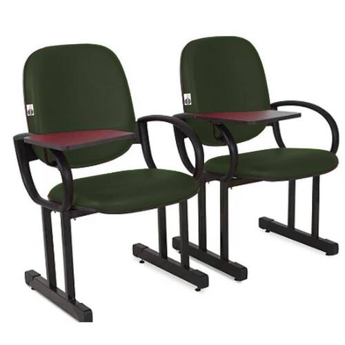 02 Cadeiras Escolar para Auditório e Escolas com Prancheta Linha Dallas Auditório Verde