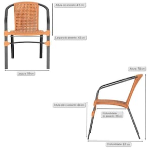 02 Cadeiras Floripa Alumínio Pintura Preta Trama Terra Cota