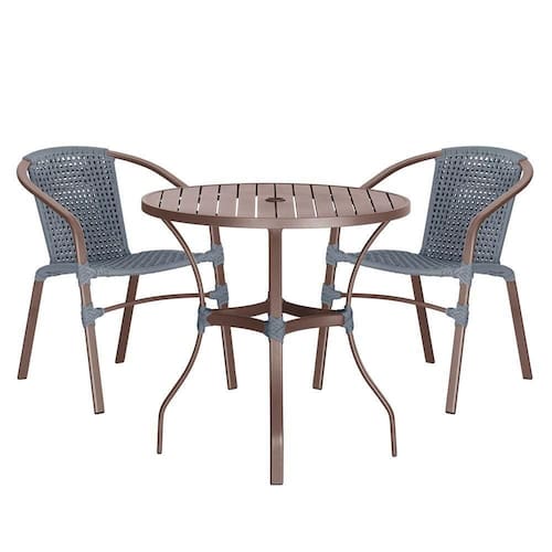 Composto por cadeiras de aluminio tramadas em corda nautica e uma elegante mesa com tampo ro, esse conjunto une sofisticacao e resistencia em cada detalhe.