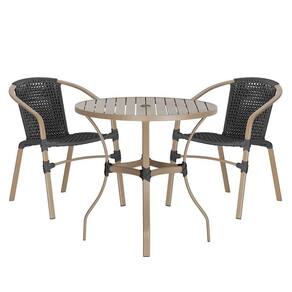 02 Cadeiras Floripa E Mesa Roma 80cm Fendi Trama Preto