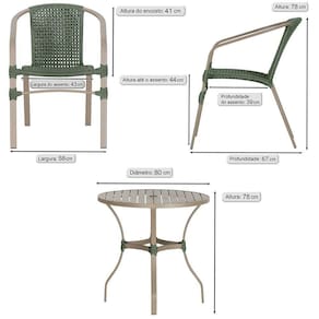 02 Cadeiras Floripa E Mesa Roma 80cm Fendi Trama Verde