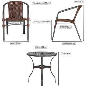 02 Cadeiras Floripa E Mesa Roma 80cm Preta Trama Marrom