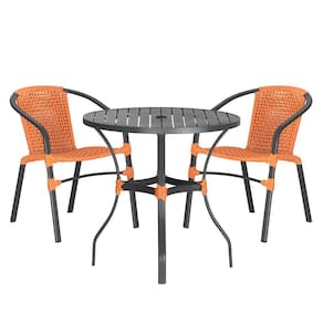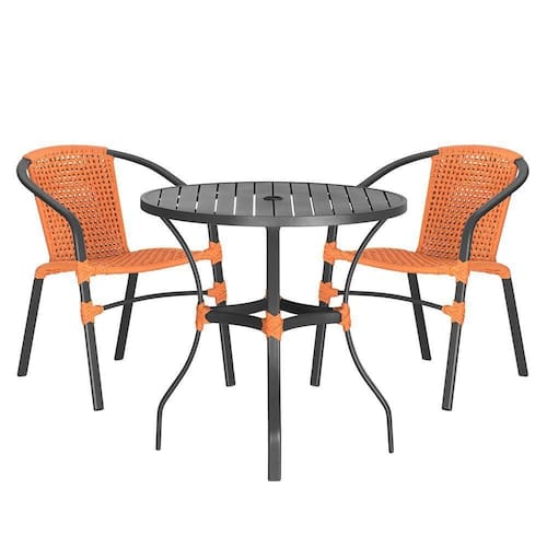 02 Cadeiras Floripa E Mesa Roma 80cm Preta Trama Terra Cota