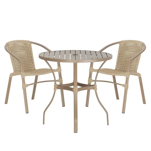 Composto por cadeiras de alumínio tramadas em corda náutica e uma elegante mesa com tampo ripado, esse conjunto une sofisticação e resistência em cada detalhe.