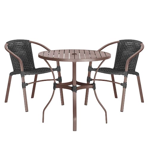 Composto por cadeiras de alumínio tramadas em corda náutica e uma elegante mesa com tampo ripado, esse conjunto une sofisticação e resistência em cada detalhe.
