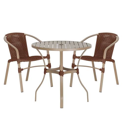 02 Cadeiras Floripa e Mesa Roma Trama - Marrom Escuro