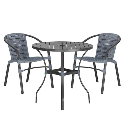 Composto por cadeiras de alumínio tramadas em corda náutica e uma elegante mesa com tampo ripado, esse conjunto une sofisticação e resistência em cada detalhe.