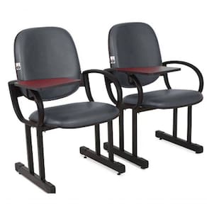 02 Cadeiras para Auditório, Cinemas, Teatros, Escolas e Faculdades com Prancheta Linha Dallas Auditório - Tonalidade da Cor do Assento e Encosto: Cinza Escuro - Marca: Design Office Móveis - Revestimento do Assento e Encosto: Material Sintético
