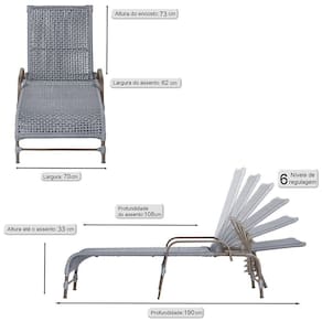 Conteudo da Embalagem: 02 Espreguicadeiras Reclinavel Catar Corda Nautica Trama