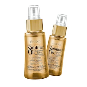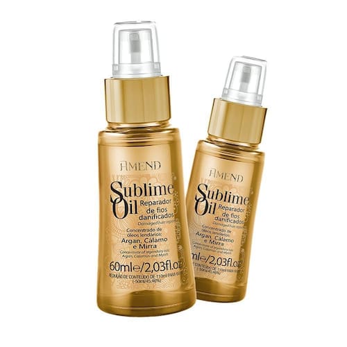 Amend - 02 Reparador de Fios Danificados Sublime Oils 60ml O Óleo Reparador Amend Sublime Oil nutre, protege e dá maciez. Ideal para utilização como pré-escova, pois sela as cutículas e prolonga o efeito liso. Ou como finalizador de penteado, pois realça o brilho e elimina o frizz. - Nutrição;- Proteção;- Maciez e brilho. Sugestão de uso:1 - Aplicar nos fios úmidos ou secos e finalize como de costume. O que você está comprando02 - Óleo Reparador Sublime Oils Amend - 60ml. Não testado em animais;Imagens meramente ilustrativas. Composição: Cyclopentasiloxane, Dimethicone, Argania Spinosa Kernel Oil, Parfum, Olea Europaea Fruit Oil, Olus Oil, Acorus Calamus Root Extract, Cinnamomum Zeylanicum Bark Extract, Commiphora Myrrha Resin Extract, BHT, Coumarin, Camelina Sativa Seed Oil, Hexyl Cinnamal, Alpha-Isomethyl Ionone, Linalool, Citronellol, Citric Acid.