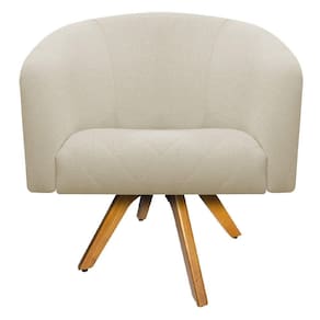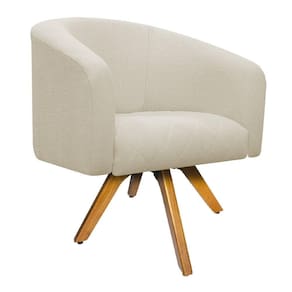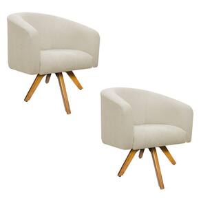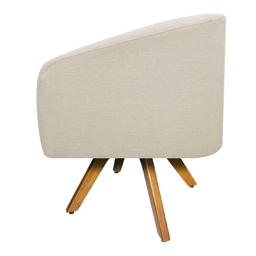 Kit 02 Poltronas Luiza Base Giratória De Madeira Linho Bege - Amarena Móveis