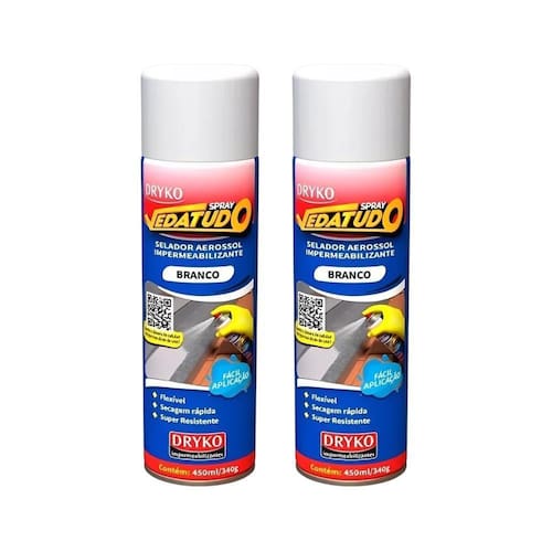 Spray impermeabilizante com acabamento emborrachado que penetra nas aberturas para reparos de vazamentos, trincas e fissuras, estancando a passagem de água rapidamente após a cura. Produto anticorrosivo com resistência a ferrugem e rápida secagem. Aceita pintura e possuí ótima resistência u.V
