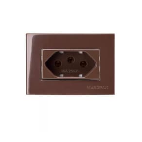 02 Tomada Para Moveis Margirius 2P+T Marrom 10A 250V Nbr 14136 Tomada para embutir em madeira, MDF, MDP ou derivados. Utilizada principalmente na marcenaria, ideais para peças planejadas como armários, cabeceiras, painéis, bancadas, balcões de cozinha, mesas para escritório, entre outras
