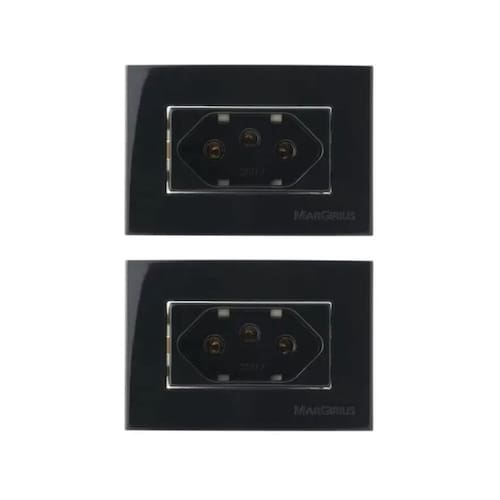 02 Tomada Para Moveis Margirius 2P T Preta 20A 250V Nbr 14136 Tomada para embutir em madeira, MDF, MDP ou derivados. Utilizada principalmente na marcenaria, ideais para peças planejadas como armários, cabeceiras, painéis, bancadas, balcões de cozinha, mesas para escritório, entre outras