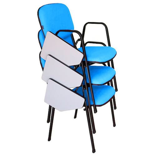 03 Cadeiras Universitárias  Empilháveis com Prancheta Escamoteável e Braços Fixos para Auditórios Linha Hotel Auditório  Azul Bebê -  Tonalidade da Cor:   Azul Bebê -  Marca: Design Office Móveis  - Modelo: 03 Cadeiras Universitárias Empilháveis com Prancheta e Braços Fixos Escamoteável para Auditórios Linha Hotel Auditório Azul Bebê     O Kit com 03 Cadeiras Universitárias Empilháveis para Auditórios Linha Hotel Auditório da marca Design Office Móveis, foi projetado para proporcionar conforto e bem estar, tornando o dia-a-dia mais agradável. Utilizado para compor diversos tipos de ambientes a Linha Hotel Auditório da marca Design Office Móveis são modelos de cadeiras para hotéis e auditórios, empresas de treinamento, salas de convenções, auditório e hotéis, com medidas avantajadas, ergonômicas e confortáveis, que se diferenciam de modelos de cadeiras para hotéis e auditórios convencionais existentes no mercado, de fabricação nacional com qualidade e garantia de 1 ano, direcionado para: Hotel , Auditório, salas de convenções, igrejas,empresas de treinamento, escolas, ambientes corporativos e empresas em geral.   A Cadeira é entregue totalmente montada, sem a necessidade de qualquer montagem adicional, é só tirar da caixa e sentar-se.    Dimensões: Largura do assento: 46,0 cm Profundidade do Assento: 40,5 cm Largura do Encosto: 47,0 cm Altura do Encosto: 33,0cm Altura Total: 85,0 cm Profundidade Total: 56,0 cm Largura Total: 54,5cm Peso da cadeira: 6,40kg - Empilhável com até 7 cadeiras sem a prancheta Altura do chão até o assento: 44,0 cm Estrutura da Cadeira: Fixa com 4 pés.  Cor da Estrutura: Preto  Com Prancheta Escamoteável  Com Braços Fixos  Kit com 03 unidades de cadeira empilháveis     Marca: Design Office Móveis   Revestimento do Assento e Encosto: Material Sintético Garantia: 12 Meses/1 ano cobrindo defeitos de fabricação.  **Medidas aproximadas, podendo haver variações**   Observações Importantes: As medidas descritas nesse anúncio são aproximadas podendo sofrer pequenas variações sendo maiores ou menores.   As cores das fotos do produto são meramente ilustrativas, a tonalidade da cor pode sofrer alterações sendo mais clara ou mais escura.   Ao receber a mercadoria efetuar a conferência. Confira as dimensões do produto e certifique-se de que passará normalmente por elevadores, portas, escadas ou corredores de sua residência.