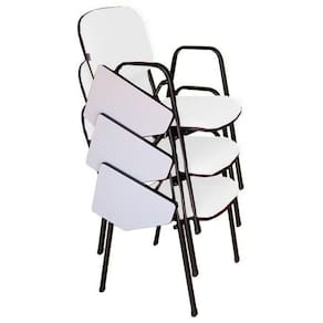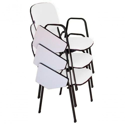 Peso da cadeira: 6,40kg - Empilhável com até 7 cadeiras sem a prancheta